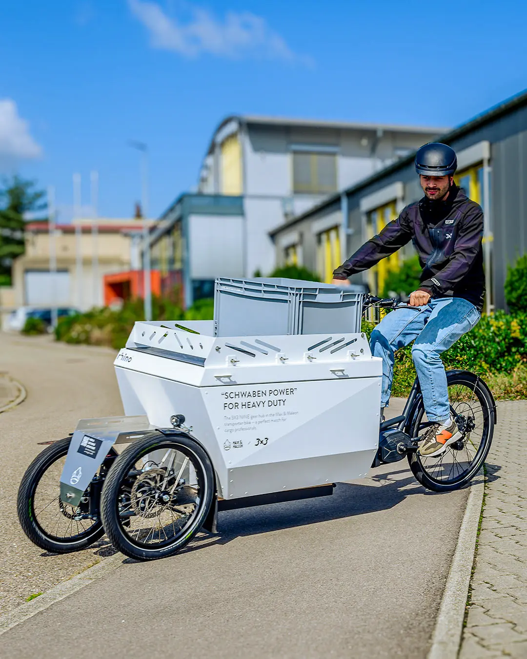 In der robusten Aluminium-Box von Rhino verstaust du blitzschnell Frachten aller Art. Dank der Kombination aus massivem Ladevolumen und unserem agilen Fahrwerk ist dies der „Sprinter“ für die Stadt – wendig genug für den Radweg, belastbar wie ein Transporter.